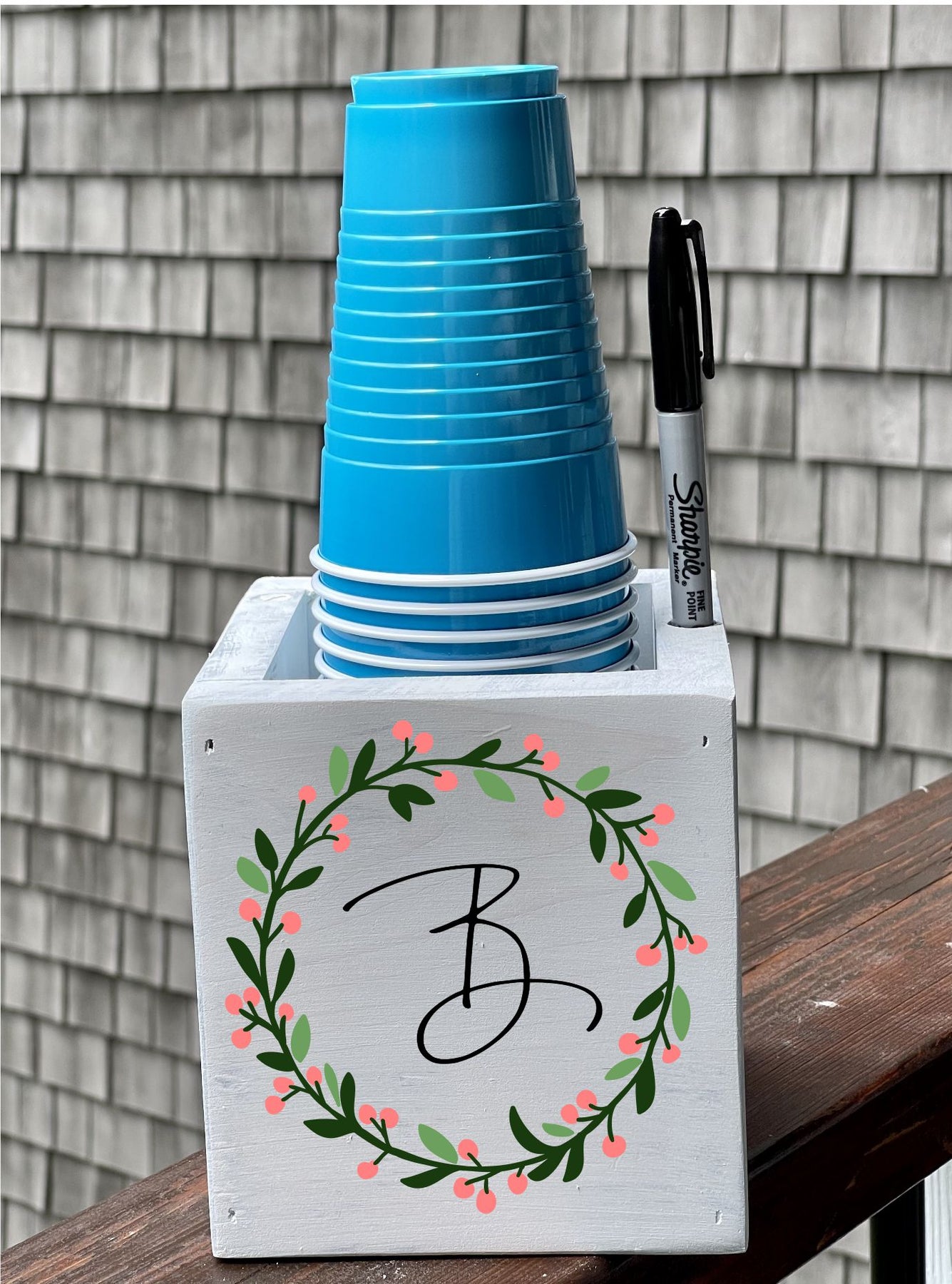 single solo cup holder with cups and marker custom design (please add customization in the personalize box in checkout)